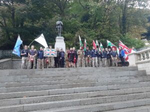 Port Talbot’s Veterans Group based at Port Talbot’s Boxing Club  walked through Briton Ferry and Neath on the 19th October 2022 to raise awareness of Veterans Mental Health. It was a 30 km walk which started at 7.30am from the garage by McDonalds, Baglan and took them through Briton Ferry with the first stop at the Cenotaph. Pictures were taken by Sylvia John (Deputy Leader of BFTC).
